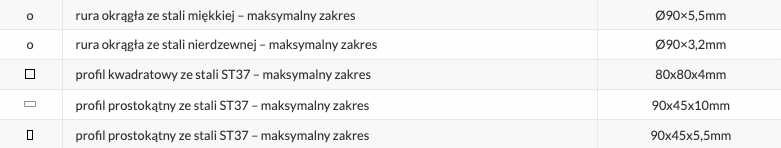 -maks. zakres dla stali zwykłych Ø90×5,5mm