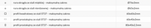• maks. zakres dla stali zwykłych Ø76x5mm