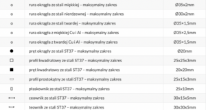 Zakres pracy od Ø5mm do Ø35×2,5mm