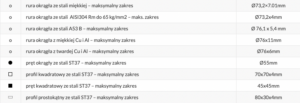 Maksymalne zakresy pracy podano dla materiałów o wytrzymałości do 360N/mm²