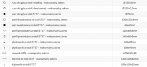 Maksymalne zakresy gięcia podano dla materiałów o wytrzymałości poniżej 36 kg/mm², przy stosowaniu jarzma wzmacniającego wały.