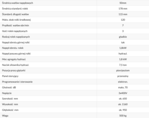 Środkowa rolka opuszczana przez siłownik hydrauliczny