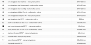 Maksymalne zakresy gięcia podano dla materiałów o wytrzymałości poniżej 36 kg/mm², przy stosowaniu jarzma wzmacniającego wały.
