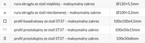 • maks. zakres dla nierdzewnych Ø100×3,2mm