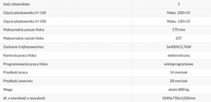 PRASA POZIOMA HYDRAULICZNA EP25H1-V2 O NACISKU 25T