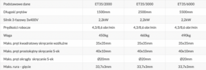Urządzenie ET35 dostępne jest w trzech wersjach długościowych – 3m, 3m i 6m.