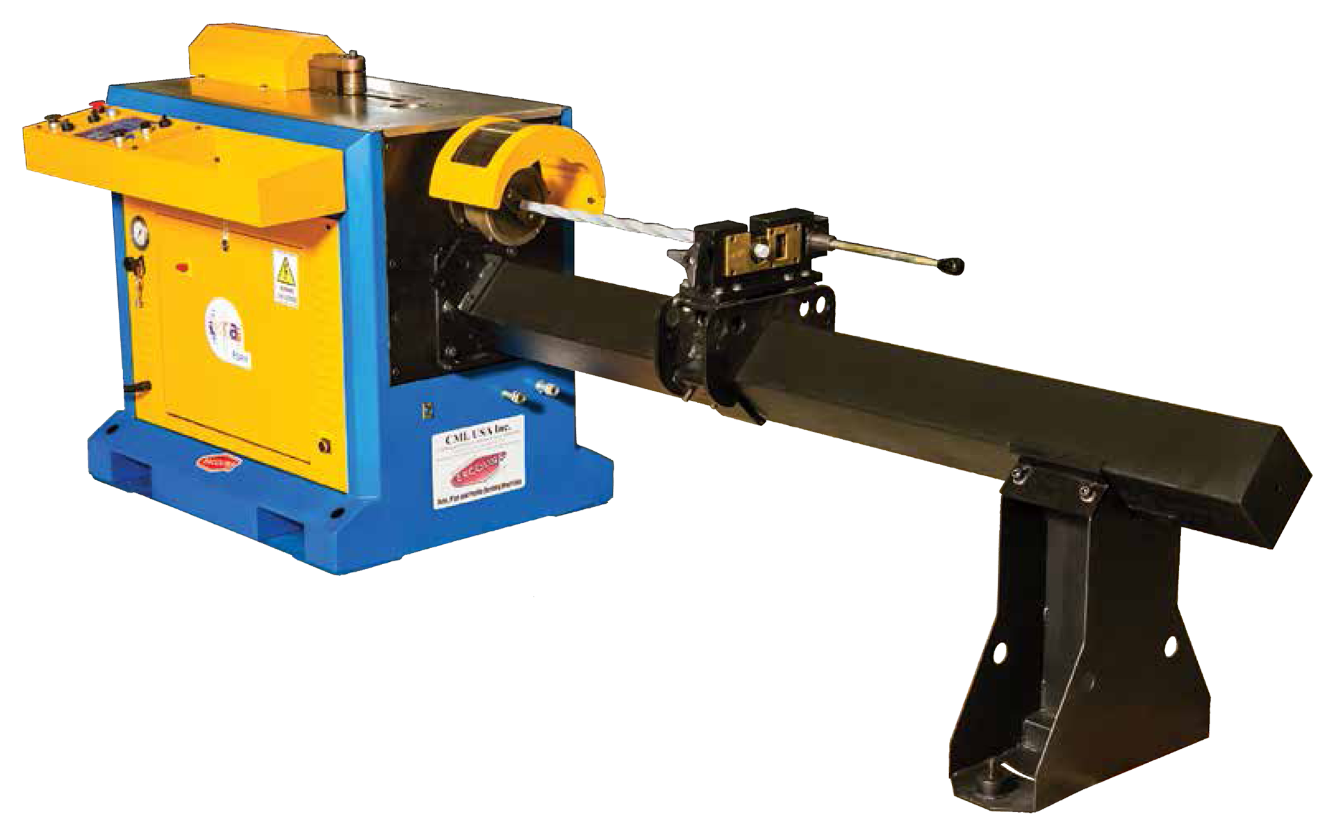 Urządzenie wyposażone w układ programowania, silnik elektryczny z hamulcem oraz dwiema prędkościami roboczymi zapewnia wysoką jakość i powtarzalność operacji, zapewnia też możliwość poprawnego doboru parametrów pracy w zależności od wymiarów pręta i rodzaju materiału.