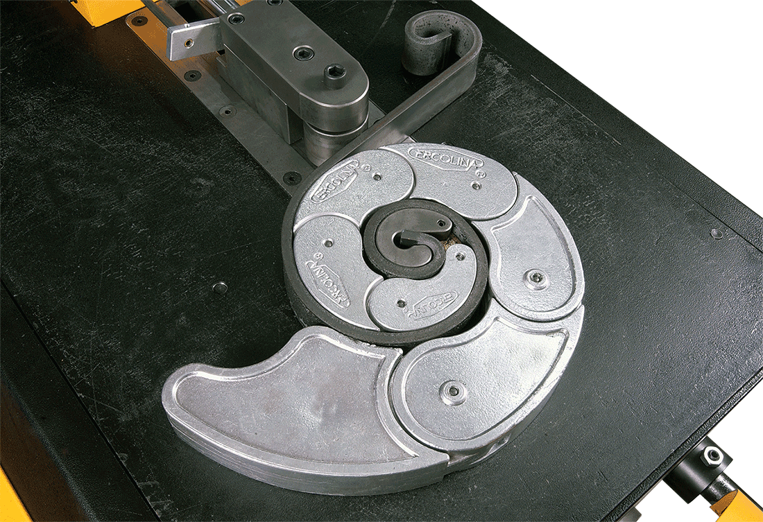 Urządzenie przystosowane jest również do gięcia rur i profili za pomocą owijania rury na wzornikach Ercolina.